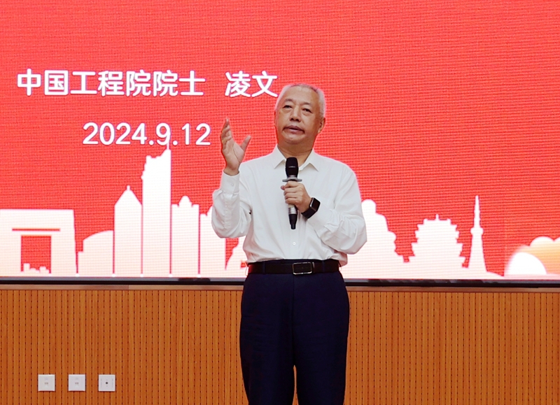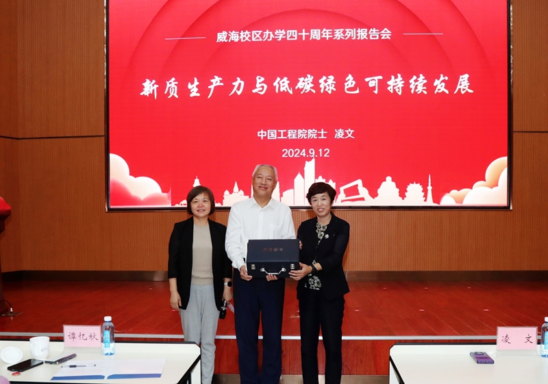 9月12日上午,中国工程院院士、山东省科协主席凌文来校区,为广大师生带来主题为“新质生产力与低碳绿色可持续发展”的精彩报告。校区校长谭忆秋主持报告会,党委书记张淑娣、党委副书记王彦岩与部分师生聆听了报告。
