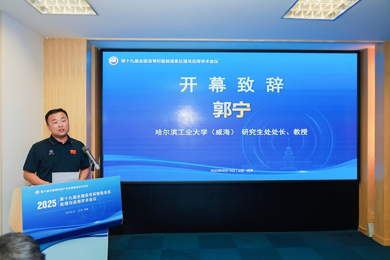 哈尔滨工业大学(威海)研究生处郭宁处长代表校区向参会专家学者表示欢迎。他讲到,信号和智能信息处理与应用技术正以前所未有的力量重塑着世界,它不仅是支撑未来智能社会的核心支柱,更是推动新质生产力发展的关键引擎。哈工大威海校区围绕国家重大需求和学科前沿,积极推进有组织科研,稳步推进车船海等特色学科建设。此次与中国高科技产业化研究会智能信息处理产业化分会、天基智能信息处理全国重点实验室携手,共同搭建高水平学术交流平台,定能促进前沿理论与创新实践的深度交融,擘画科技发展的新蓝图。
