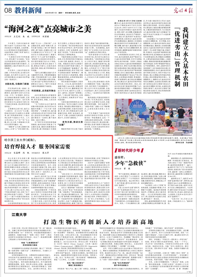 9月1日,《光明日报》以《培育焊接人才 服务国家需要》为题,报道我校区山东省特种焊接技术重点实验室人才培养的经验做法和突出成就。