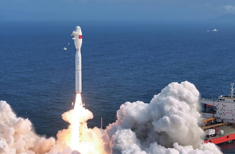 搭载着“威海壹号”01—02 星 的捷龙三号运载火箭在广东阳江附近 海面成功发射(2024 年2月3日摄) 哈工大供图