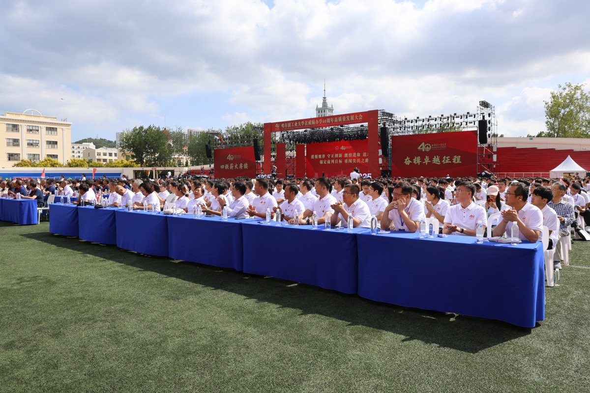 陈杰在主持大会时表示,一座城市孕育着一所大学,一所大学滋养着一座城市。40年来,在党中央的亲切关怀下,在各方的大力支持下,哈工大在威海办学取得了突出成就,创造了我国高等教育发展史上多项“第一”乃至“唯一”,结下了累累硕果,书写出了无愧于时代的华彩篇章。哈工大在威海办学的40年,是一部扎根奋斗、开拓创新的创业史,是一部追求卓越、勇攀高峰的奋斗史,更是一部深耕齐鲁、服务国家的奉献史。今天的大会,既是对哈工大在威海办学40年接续奋斗的总结和回顾,更是对新征程砥砺奋进的激励与展望。学校将始终坚持以习近平总书记贺信精神为引领,全面贯彻全国教育大会精神和教育强国建设规划纲要,紧紧锚定迈向世界一流大学前列战略目标,遵循规律、守正创新、激情进取、追求卓越,全力推动威海校区实现跨越式发展,以卓越业绩服务新型工业化事业、助力山东“走在前、挑大梁”,为实现强国建设、民族复兴伟业作出新的更大贡献。